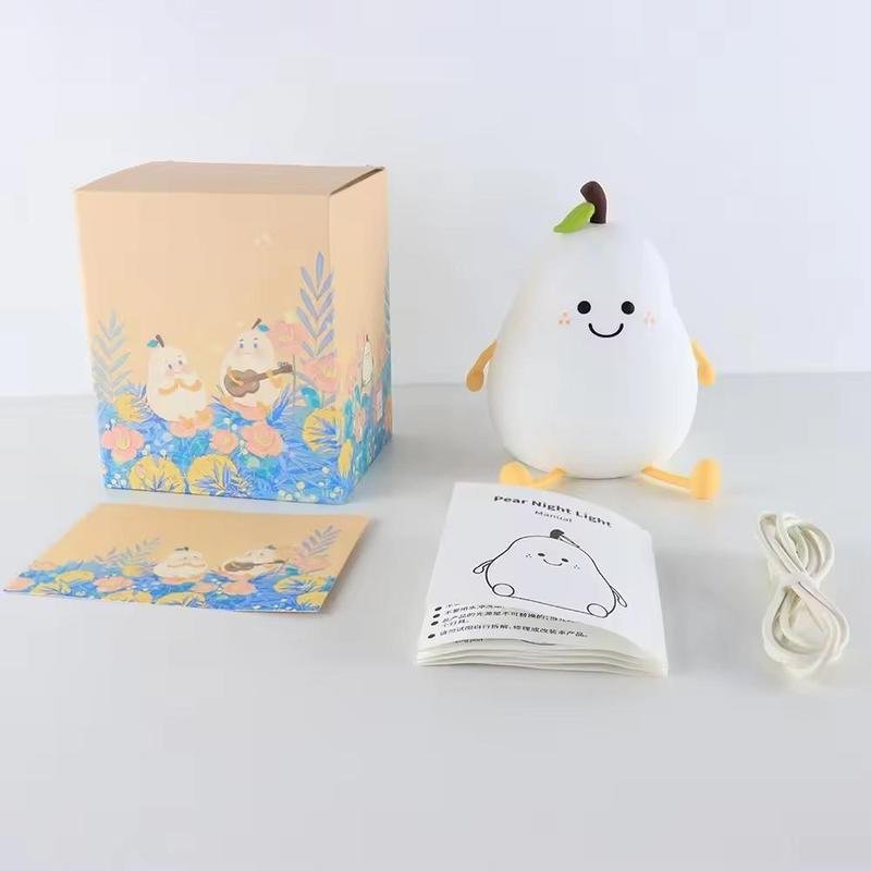 【Soothing Pear Shaped Night Light】 The night light provides a gentle andcalming glow for children of all ages to drive away the darkness andaccompany children at bedtime, allowing parents to enjoy a peaceful night’ssleep as well. No more worrying about struggling at bedtime.